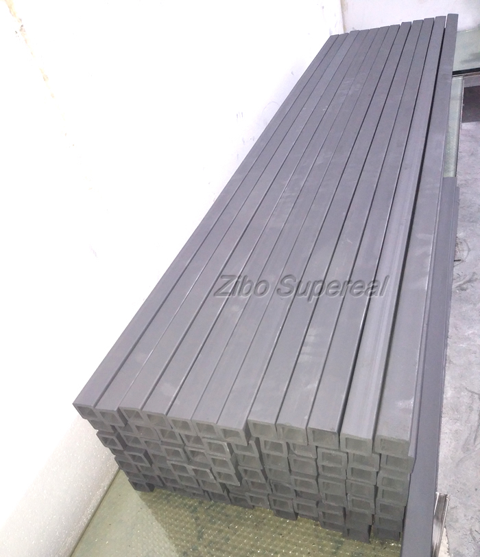 | RBSiC(SiSiC) beams are widely used for the loading structure systems of tunnel kilns shuttle kilns, roller hearth kilns and other industrial kilns. RBSiC beams have higher bending strength oxidation resistance, and there is no deformation when it works for long term at high temperature.